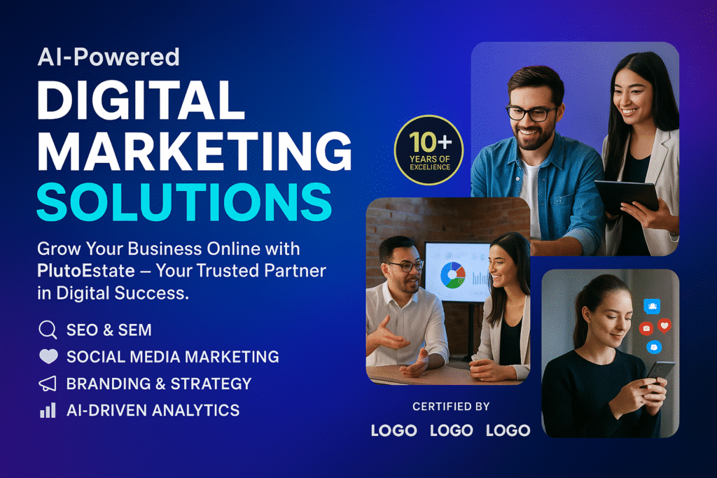 Welcome to Plutoestate Digital Marketing Agency, your trusted partner for business growth in the digital world. We live in a time where online presence has the power to make or break a brand. Customers are constantly searching, scrolling, and engaging, which means if your business isn’t visible online, you’re missing opportunities every single day. At Plutoestate, we make sure that doesn’t happen.